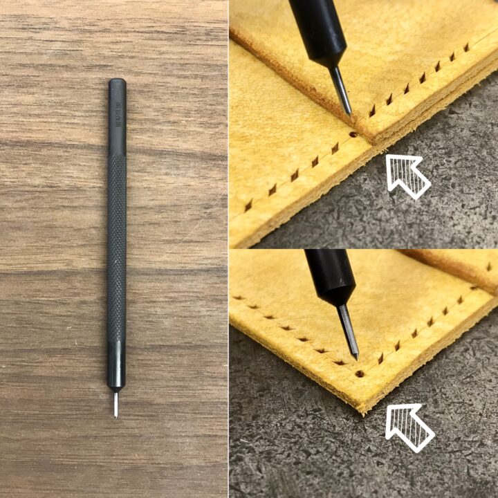 We’ve developed this item to pursue beautiful finishing for stitching and reduce damaging the edge of the leather sheet. We made this item thinking about the prong shape of Diamond Hole Punches, the thickness of the needle and thread.